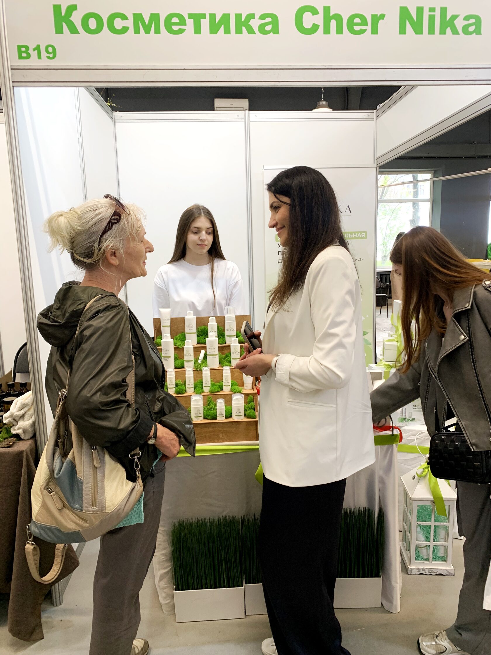 К нашему стенду подошла почтенная дама и молча стала изучать составы всех средств, которые были представлены. Я была как раз возле стенда и подошла к ней с вопросом, чем могу помочь и, конечно, представилась, что являюсь основателем и создателем бренда Cher Nika.